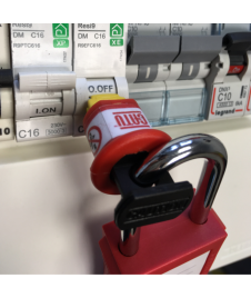 - Cadenassable pour une sécurité accrue : Pour renforcer la sécurité, ce dispositif peut être cadenassé à l'aide d'un mini cadenas avec un trou de Ø 6 mm.